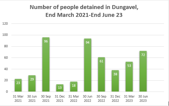 In the year to the end of June 2023, 406 people entered detention in Dungavel, only 4 per cent fewer than in the previous year.